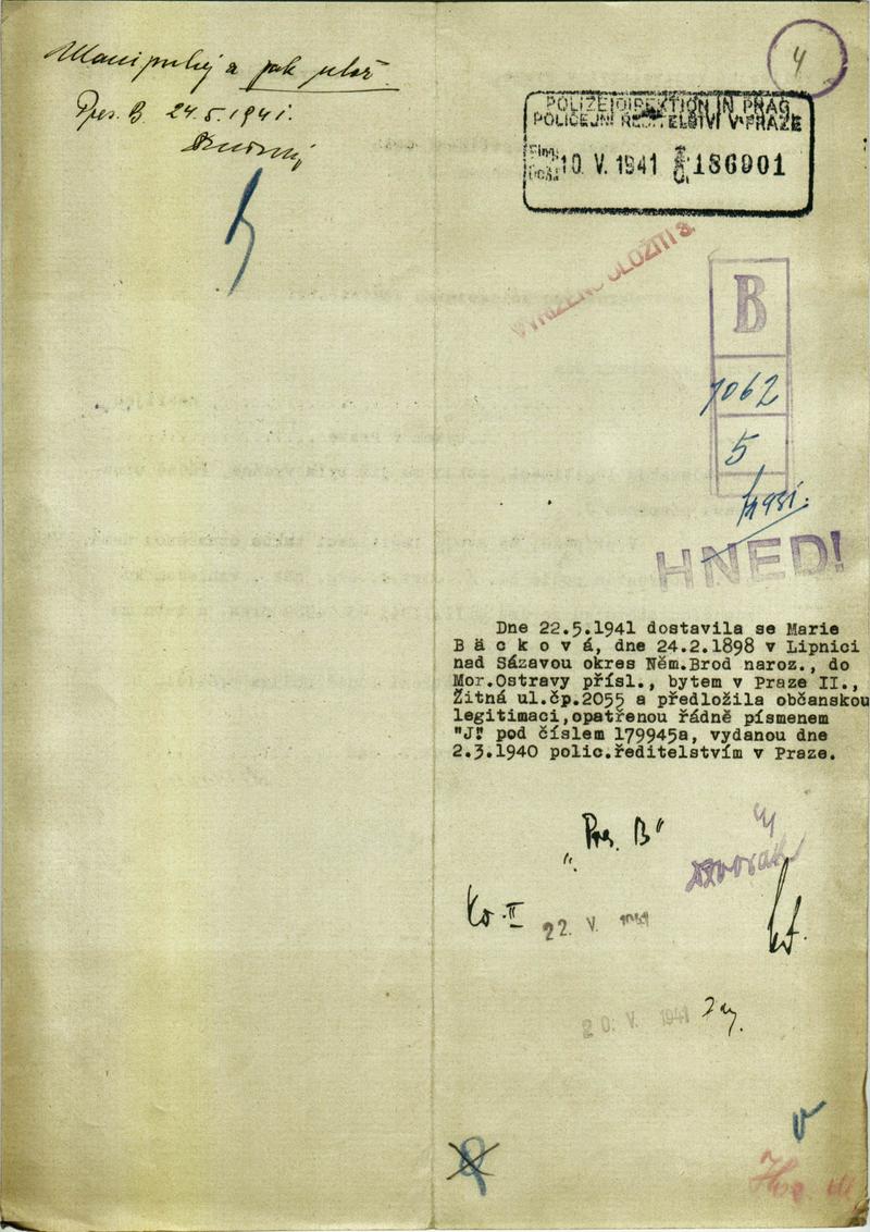 Nationalarchiv Prag > Polizei-Direktion Prag > 1941-1950 > B > Bäcková Marie
