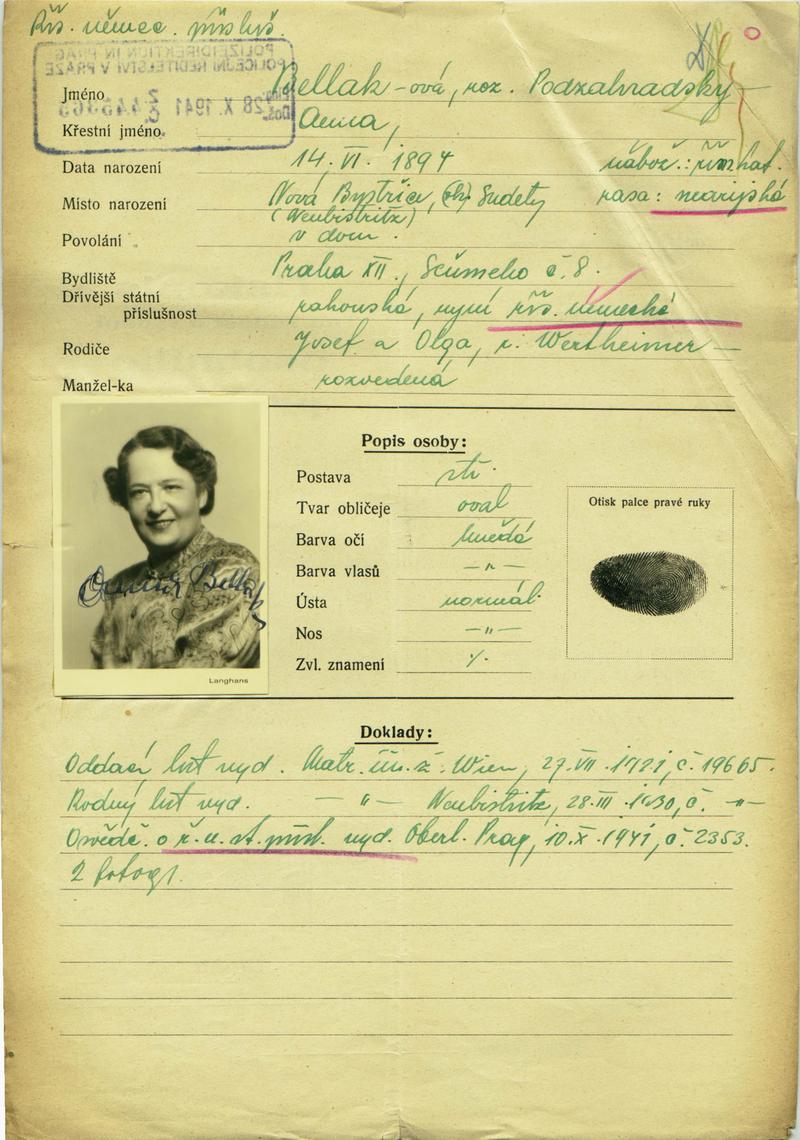 Nationalarchiv Prag > Polizei-Direktion Prag > 1941-1950 > B > Bellaková Anna