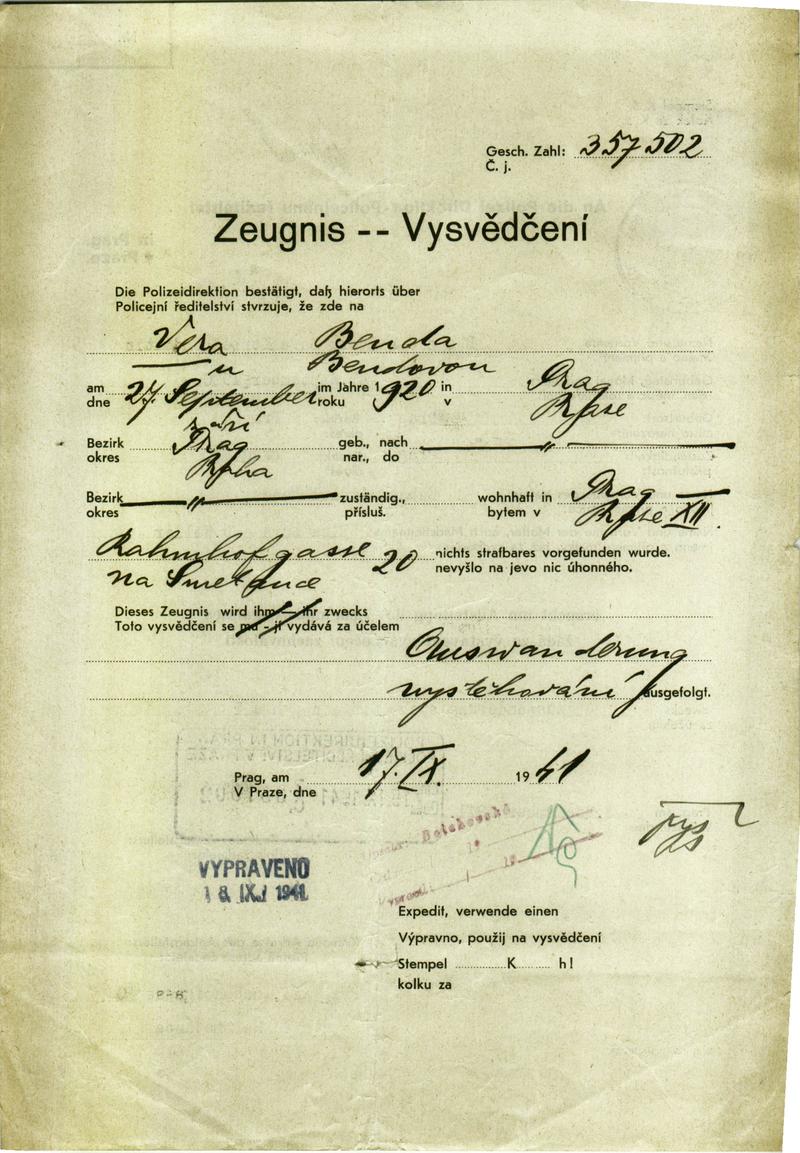 Nationalarchiv Prag > Polizei-Direktion Prag > 1941-1950 > B > Bendová Věra