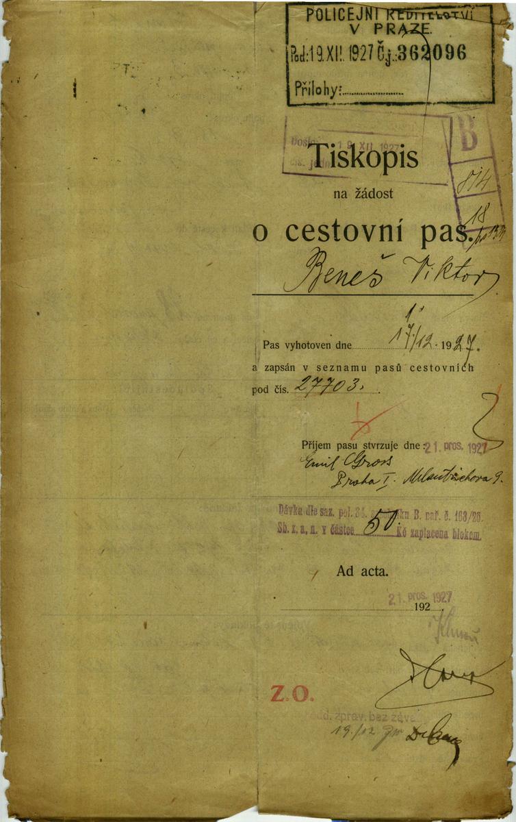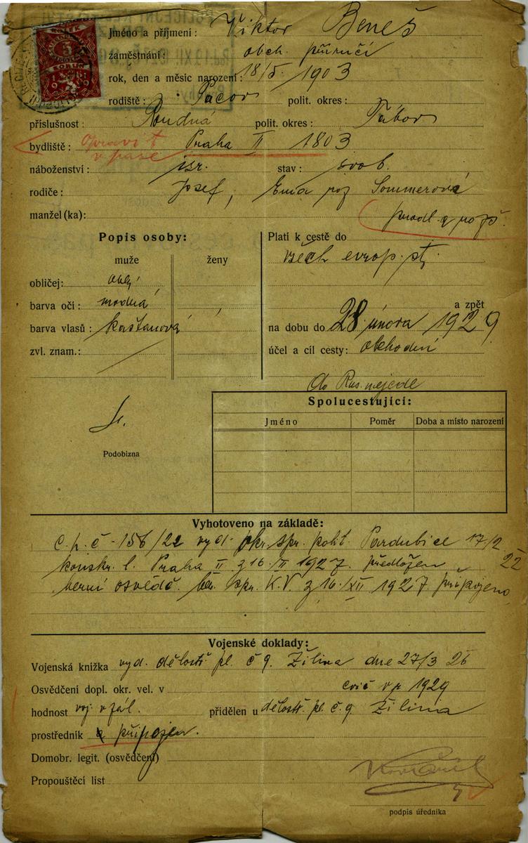 Nationalarchiv Prag > Polizei-Direktion Prag > 1941-1950 > B > Beneš Viktor