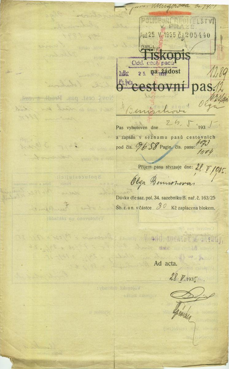 Nationalarchiv Prag > Polizei-Direktion Prag > 1941-1950 > B > Benischová Olga
