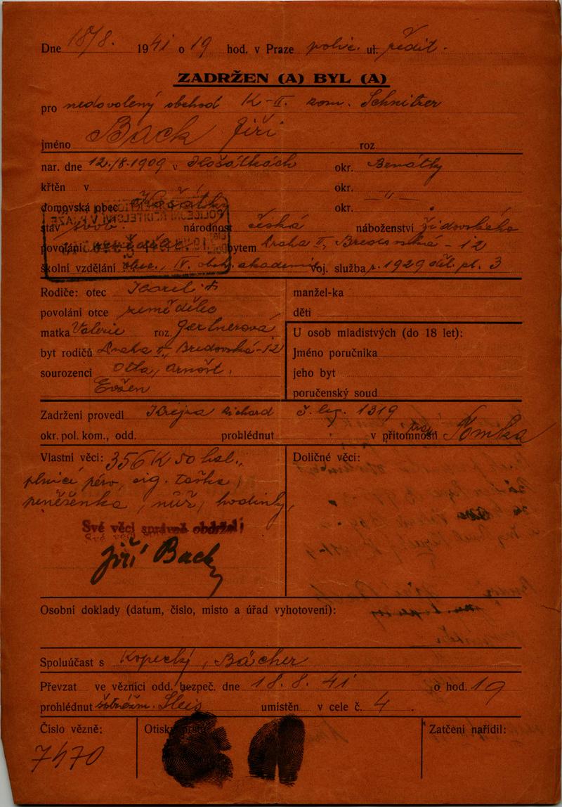 Nationalarchiv Prag > Polizei-Direktion Prag > 1941-1950 > B > Back Jiří