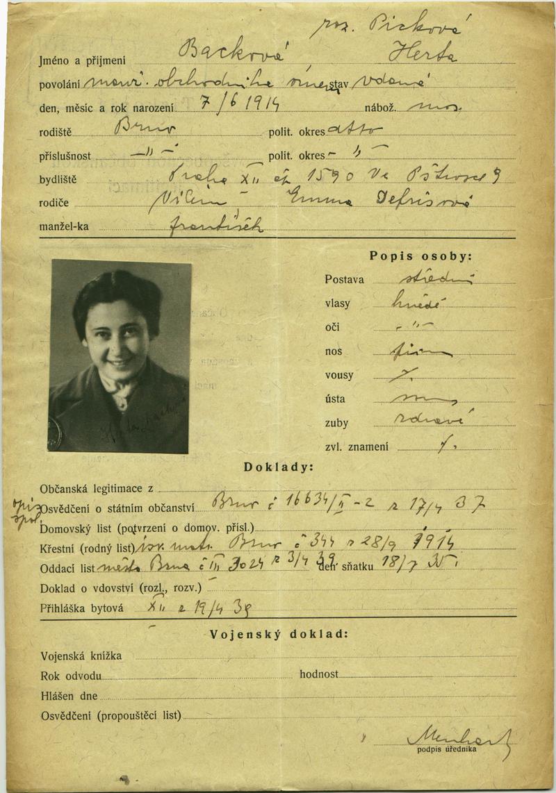 Nationalarchiv Prag > Polizei-Direktion Prag > 1941-1950 > B > Backová Herta