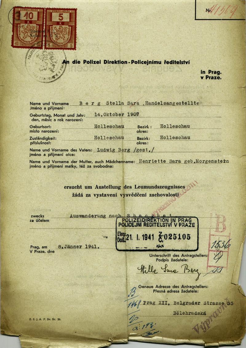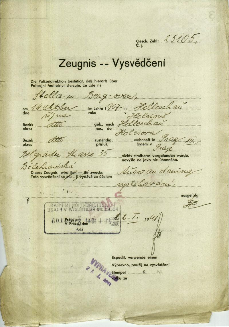 Nationalarchiv Prag > Polizei-Direktion Prag > 1941-1950 > B > Bergová Stella