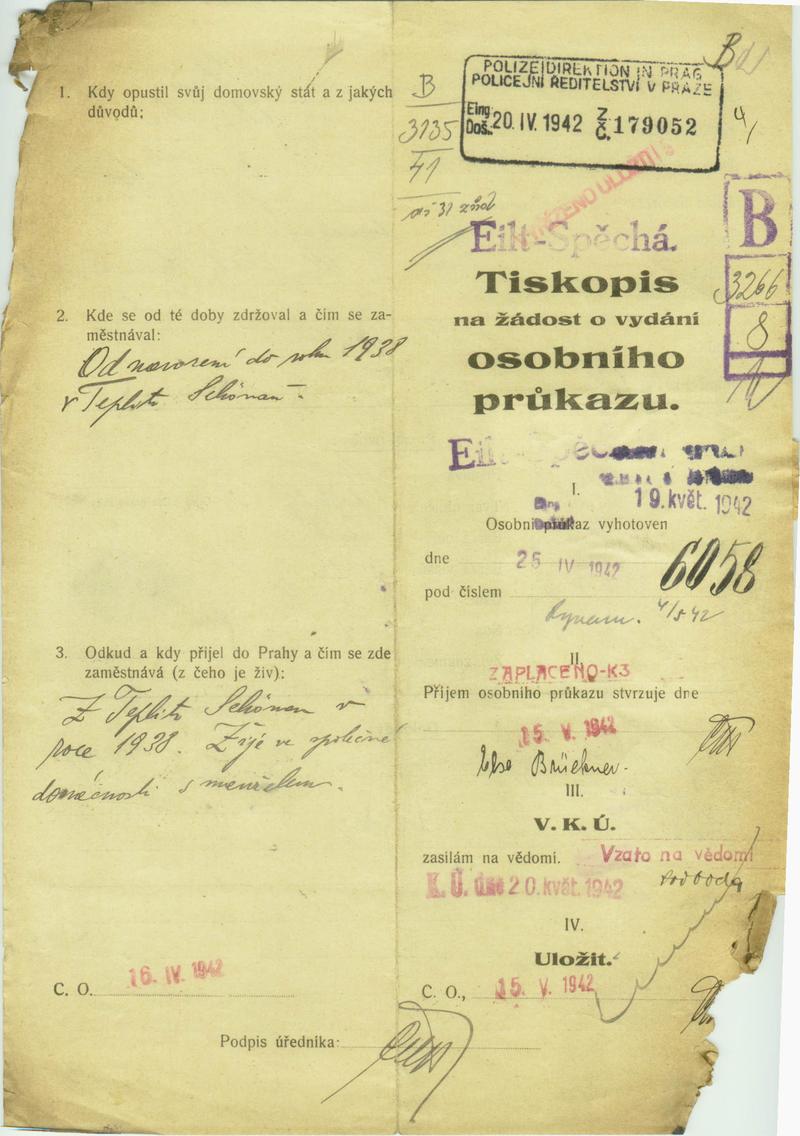 For publication purposes, contact the National Archives in Prague, where the original document is located. The document was digitized by the Terezín Initiative Institute, the Terezín Album project