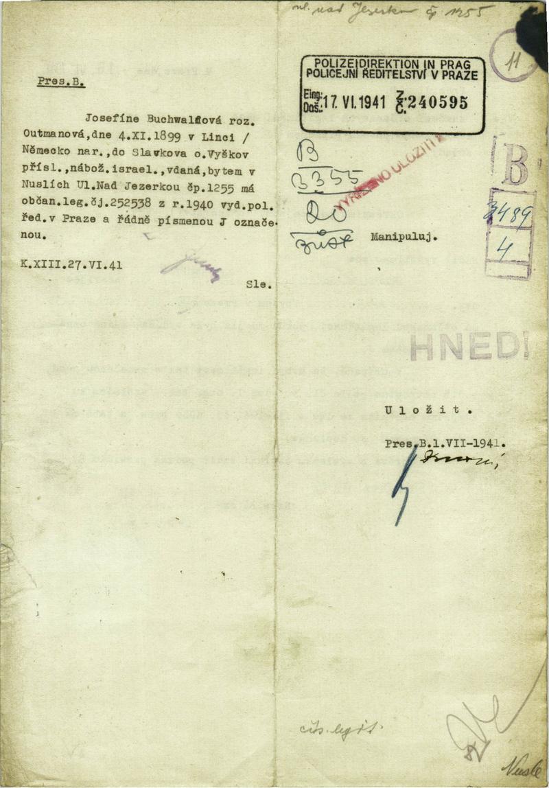 Nationalarchiv Prag > Polizei-Direktion Prag > 1941-1950 > B > Buchwaldová Josefa