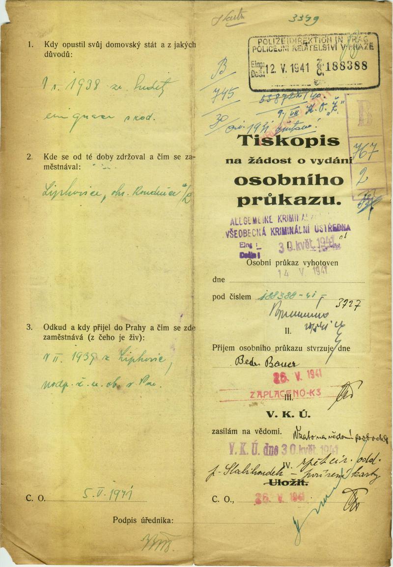 Nationalarchiv Prag > Polizei-Direktion Prag > 1941-1950 > B > Bauer Bedřich