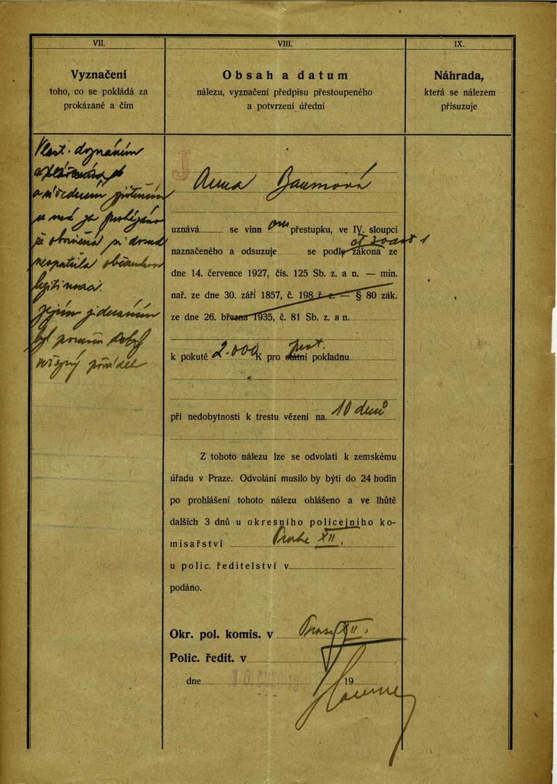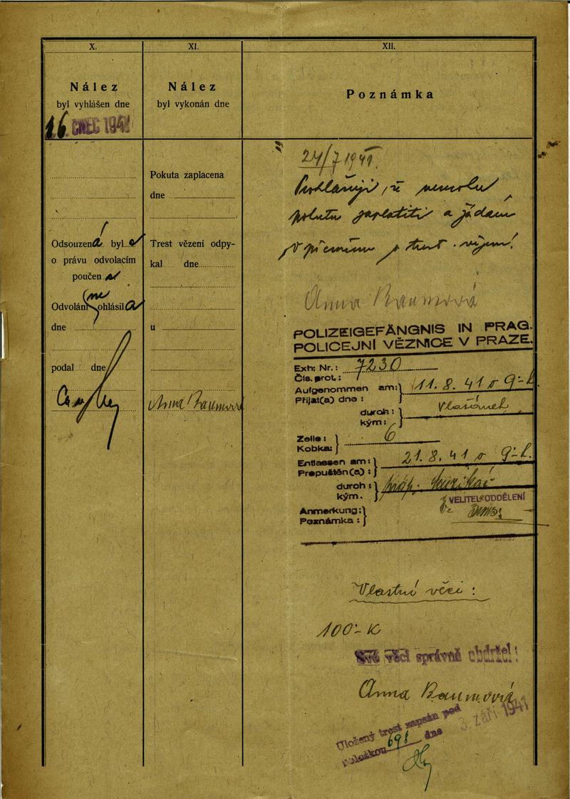 Nationalarchiv Prag > Polizei-Direktion Prag > 1941-1950 > B > Baumová Anna