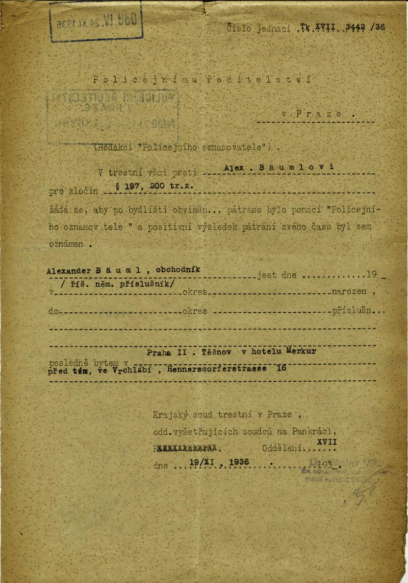 Nationalarchiv Prag > Polizei-Direktion Prag > 1941-1950 > B > Bäuml Alexandr