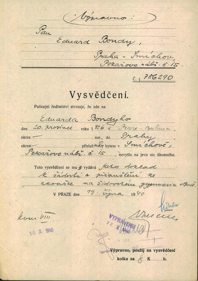 Nationalarchiv Prag > Polizei-Direktion Prag > 1931-1940 > B > Bondy Eduard