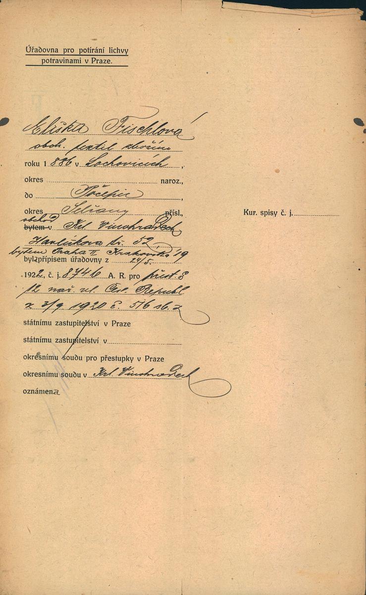 Nationalarchiv Prag > Polizei-Direktion Prag > 1931-1940 > F > Fischlová Eliška