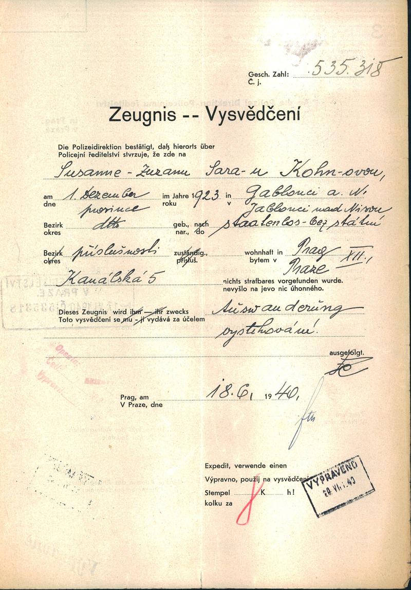 Nationalarchiv Prag > Polizei-Direktion Prag > 1941-1950 > K > Kohnová Zuzana