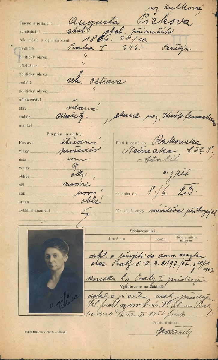 Nationalarchiv Prag > Polizei-Direktion Prag > 1931-1940 > P > Picková Augusta