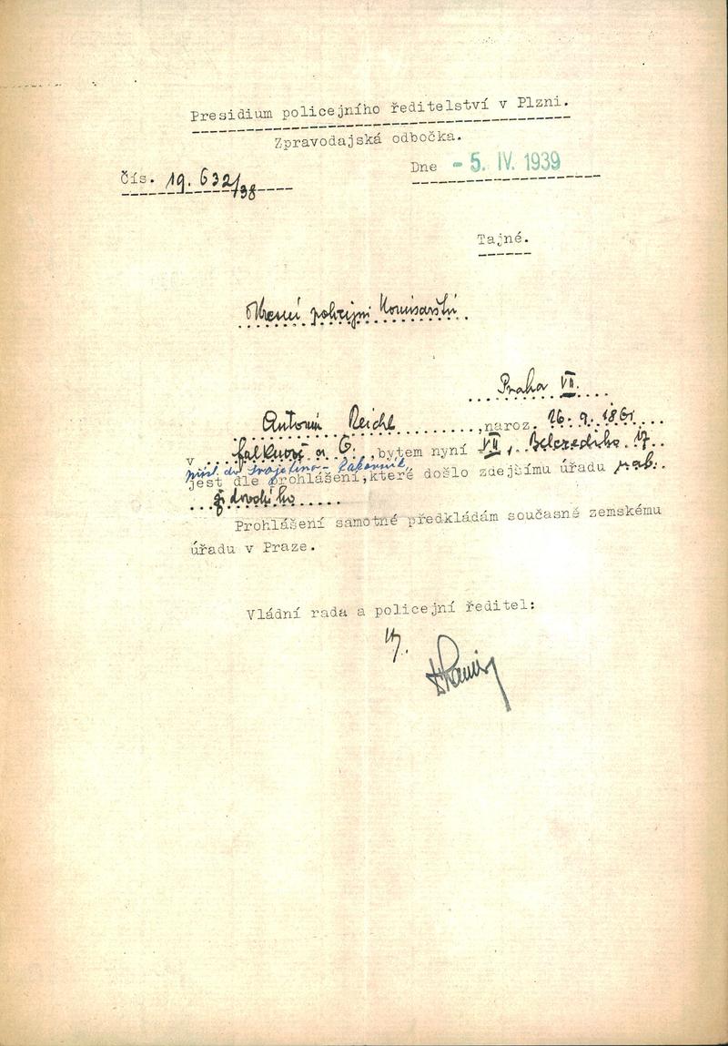 Nationalarchiv Prag > Polizei-Direktion Prag > 1941-1950 > R > Reichl Anton