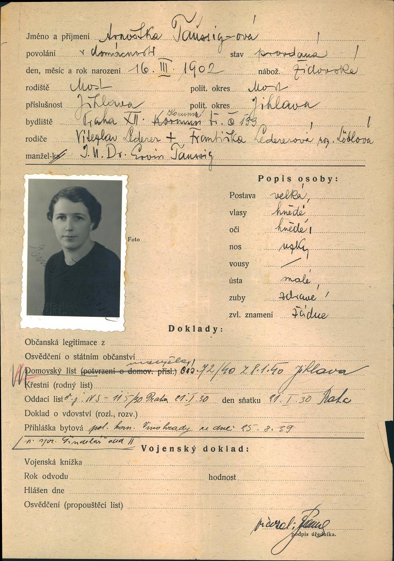 Nationalarchiv Prag > Polizei-Direktion Prag > 1931-1940 > T > Taussigová Erna