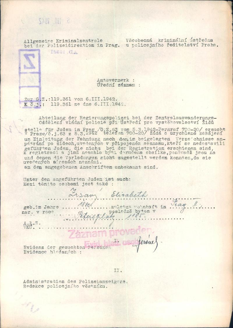 Nationalarchiv Prag > Polizei-Direktion Prag > 1941-1950 > Z > Zerzavá Alžběta