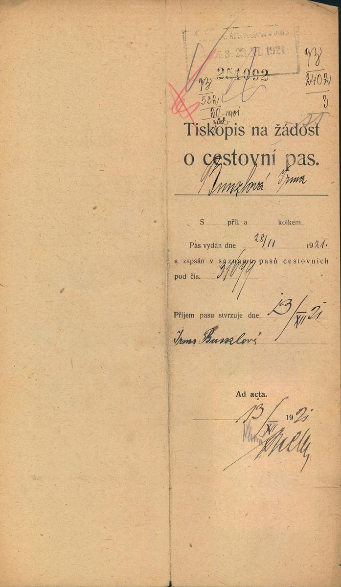 Nationalarchiv Prag > Polizei-Direktion Prag > 1921-1930 > B > Bunzlová Irma