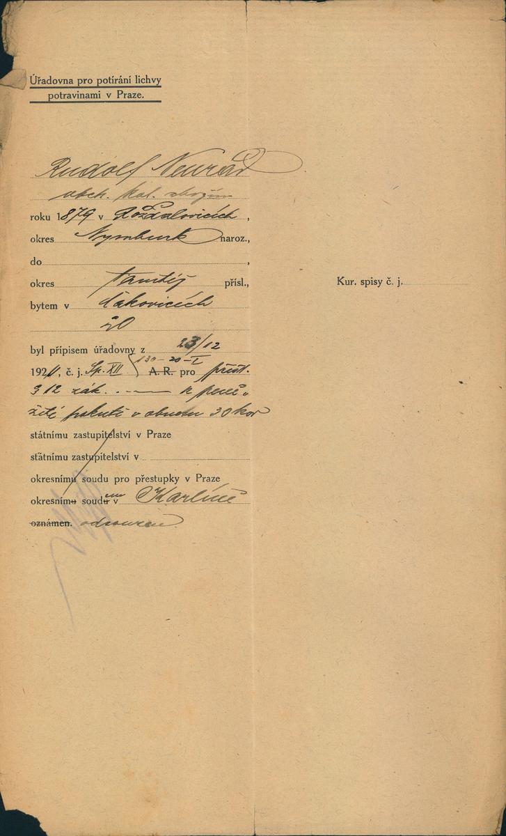 Nationalarchiv Prag > Polizei-Direktion Prag > 1921-1930 > N > Neurad Rudolf