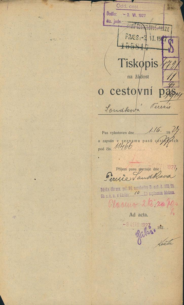 Nationalarchiv Prag > Polizei-Direktion Prag > 1921-1930 > S > Soudková Terezie