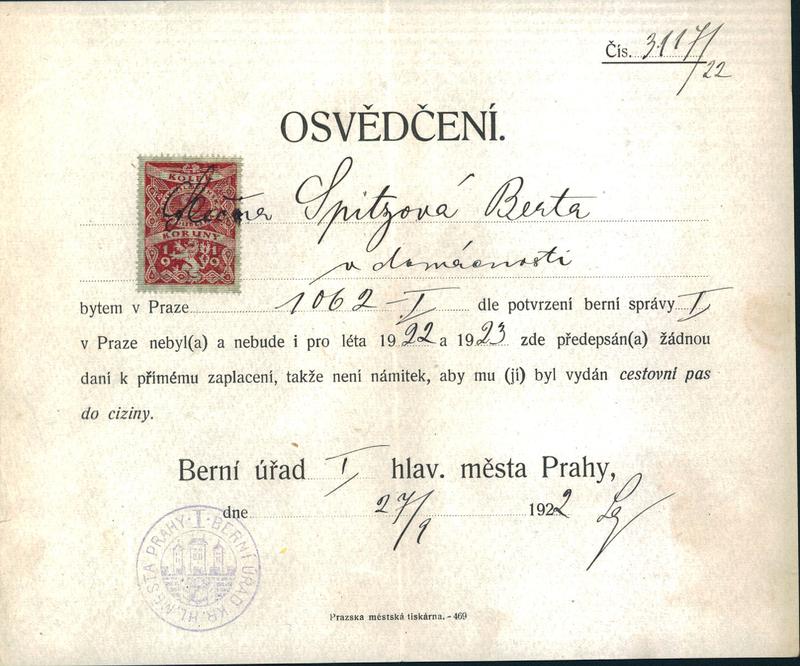 Nationalarchiv Prag > Polizei-Direktion Prag > 1921-1930 > S > Spitzová Berta