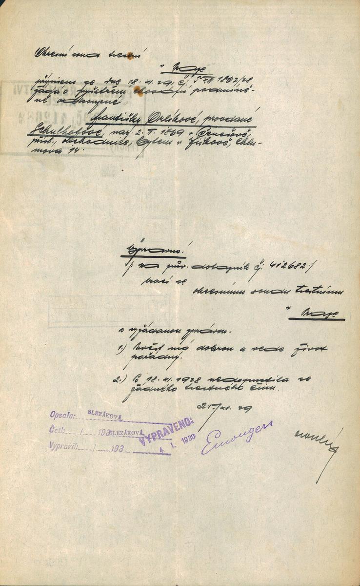 Nationalarchiv Prag > Polizei-Direktion Prag > 1921-1930 > S > Schulhofová Františka