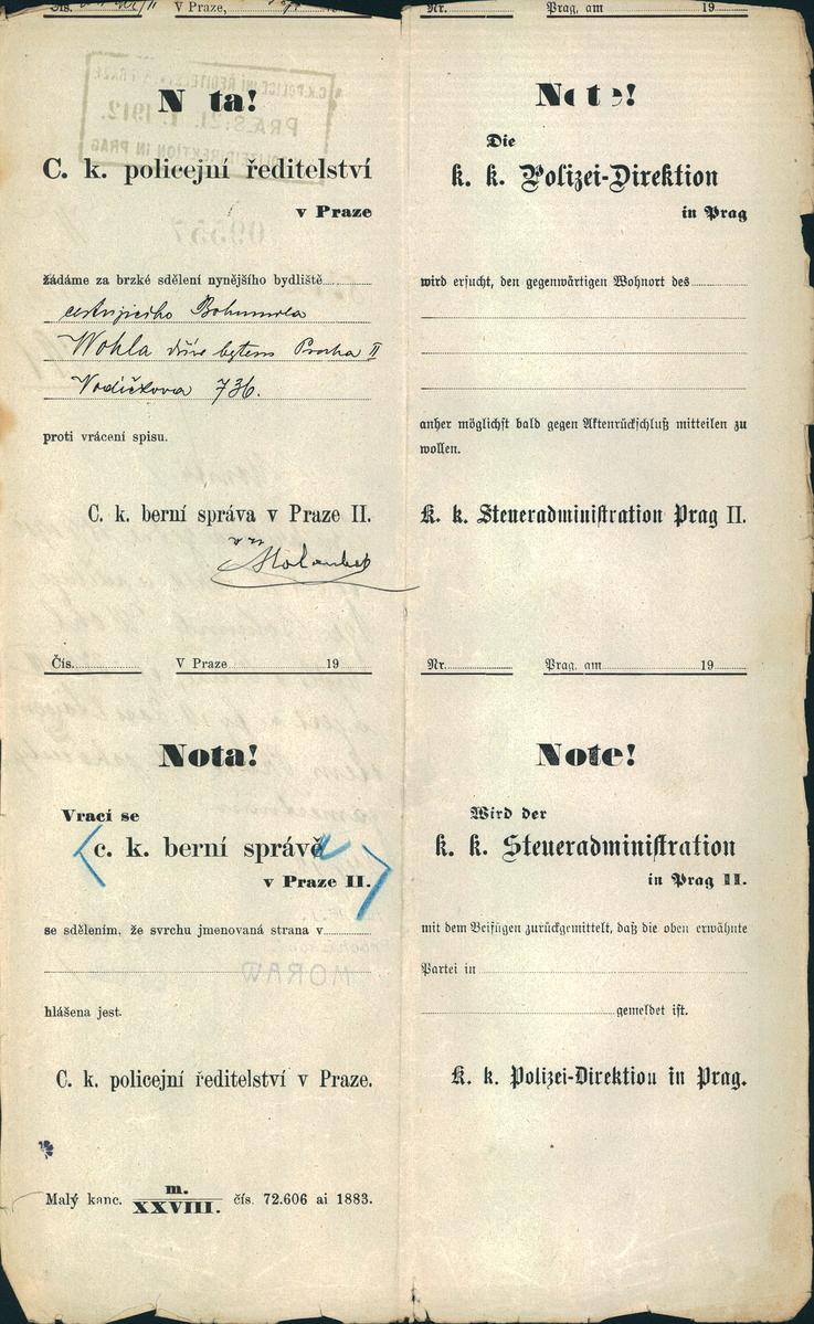 Nationalarchiv Prag > Polizei-Direktion Prag > 1921-1930 > W > Wohl Bohumil