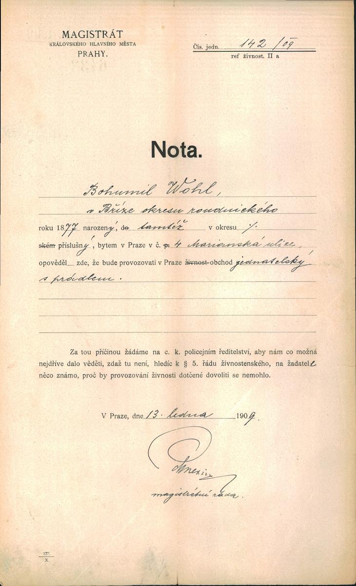 Nationalarchiv Prag > Polizei-Direktion Prag > 1921-1930 > W > Wohl Bohumil