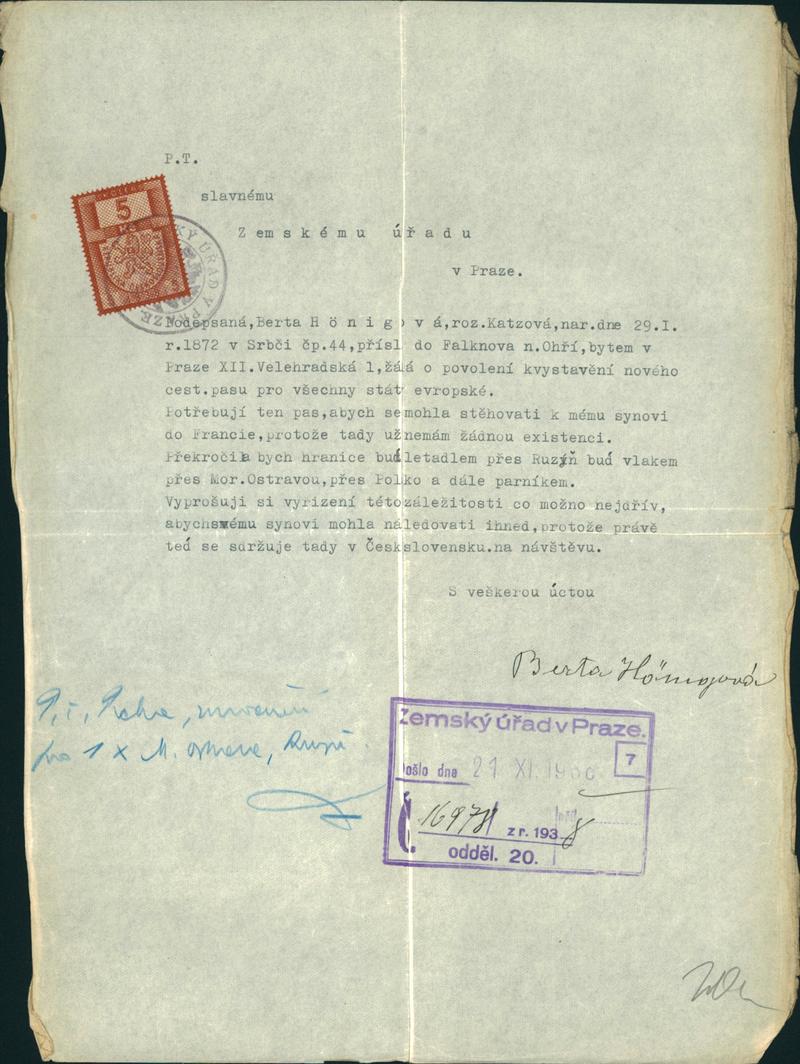 Nationalarchiv Prag > Polizei-Direktion Prag > 1941-1950 > H > Hönigová Berta