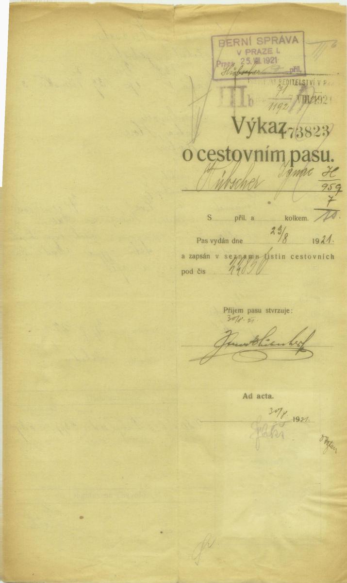 Nationalarchiv Prag > Polizei-Direktion Prag > 1941-1950 > H > Hübscher Hynek