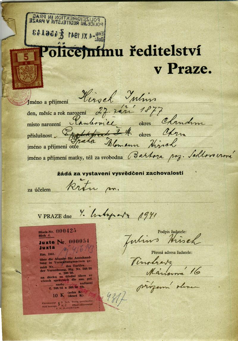 Nationalarchiv Prag > Polizei-Direktion Prag > 1941-1950 > H > Hirsch Julius