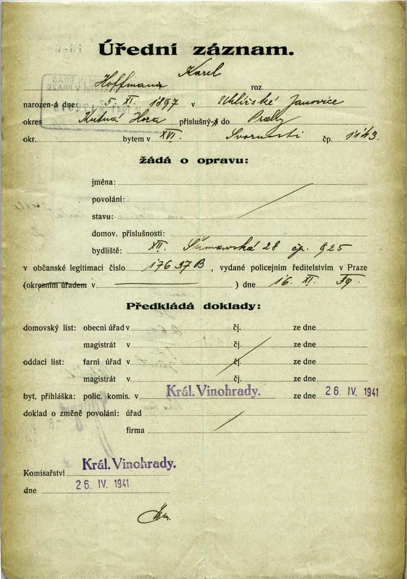 Nationalarchiv Prag > Polizei-Direktion Prag > 1941-1950 > H > Hoffmann Karel