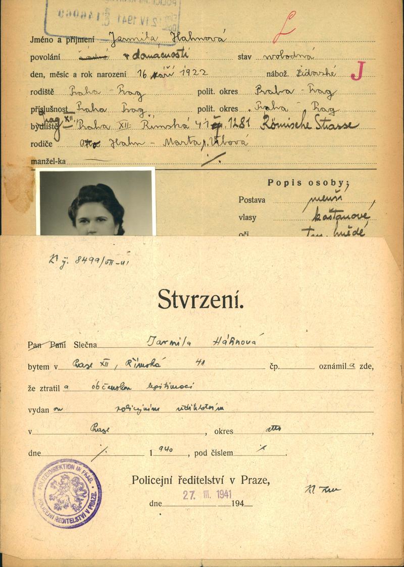 Nationalarchiv Prag > Polizei-Direktion Prag > 1941-1950 > H > Hahnová Jarmila