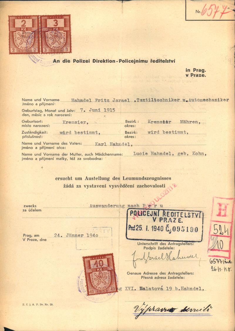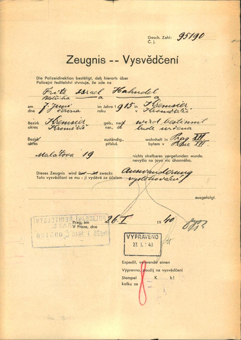 Nationalarchiv Prag > Polizei-Direktion Prag > 1941-1950 > H > Hahndel Bedřich