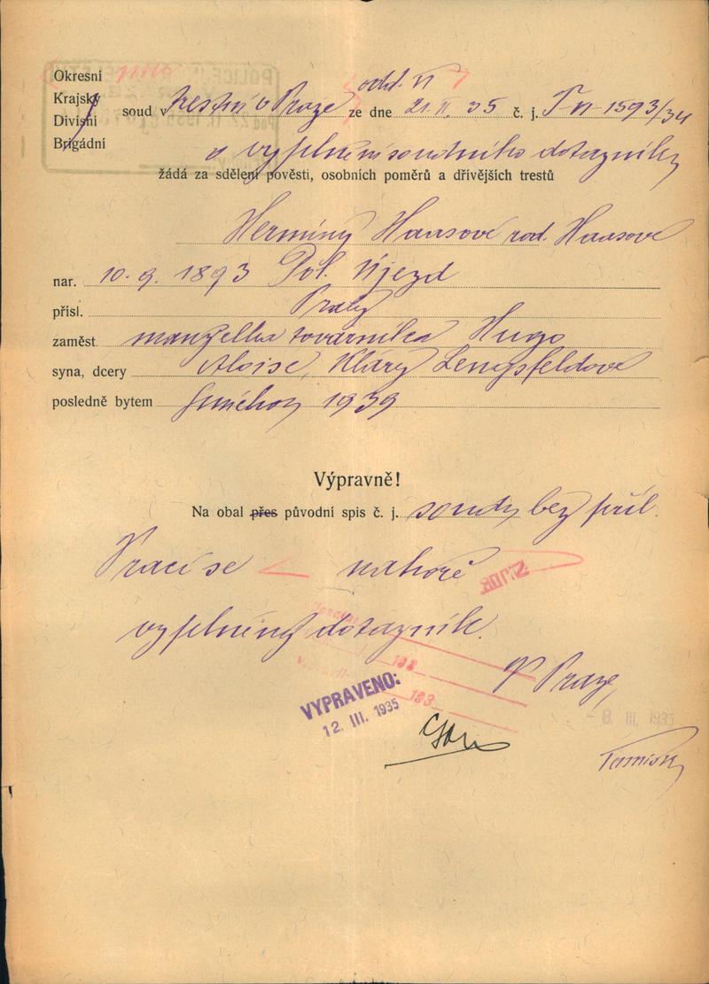 Nationalarchiv Prag > Polizei-Direktion Prag > 1941-1950 > H > Haasová Hermína