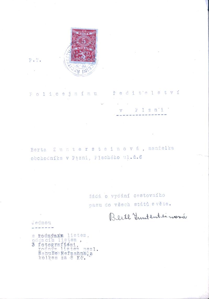 Staatliche Gebietsarchiv in Pilsen > Polizei-Direktion Pilsen > 1918-1951 > C > Zuntersteinová Berta