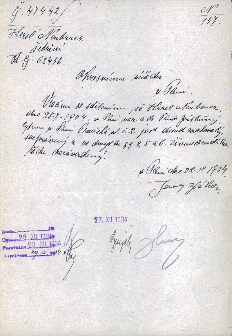 Staatliche Gebietsarchiv in Pilsen > Polizei-Direktion Pilsen > 1918-1951 > N > Neubauer Karel