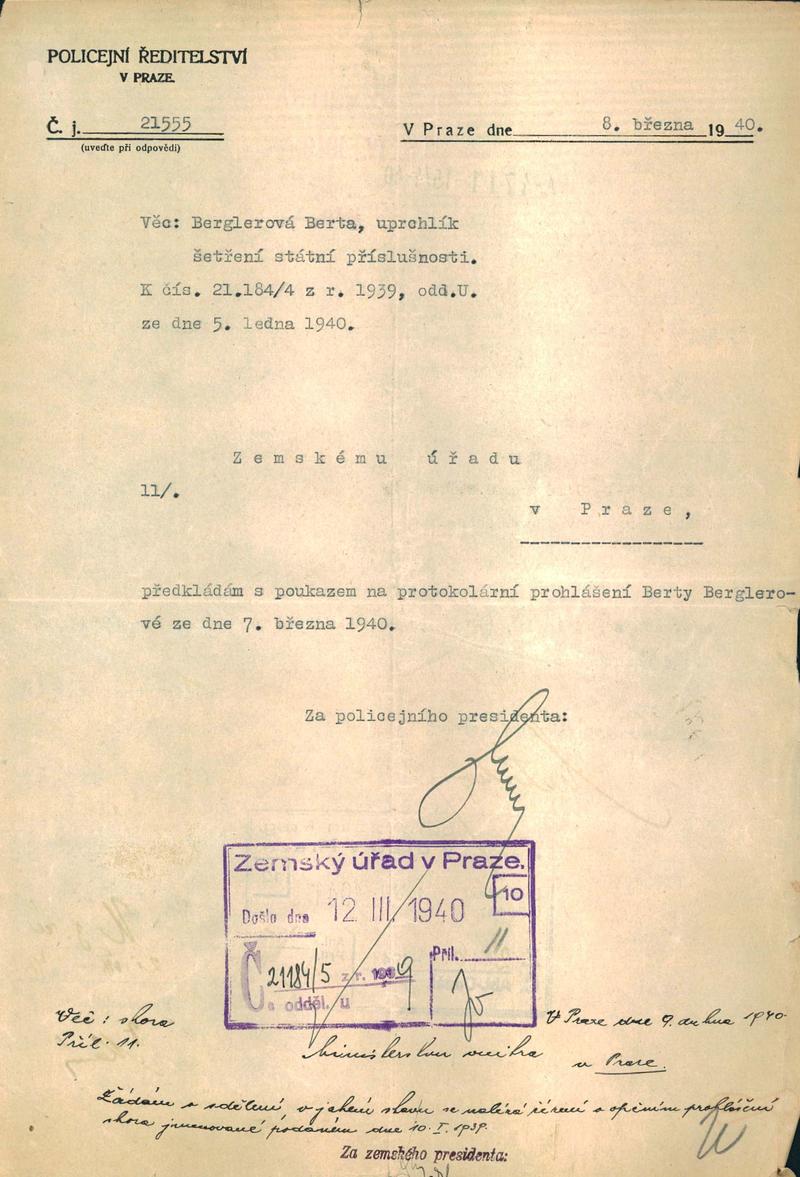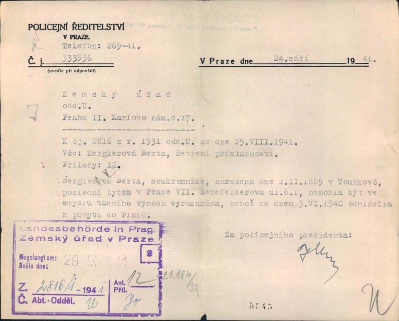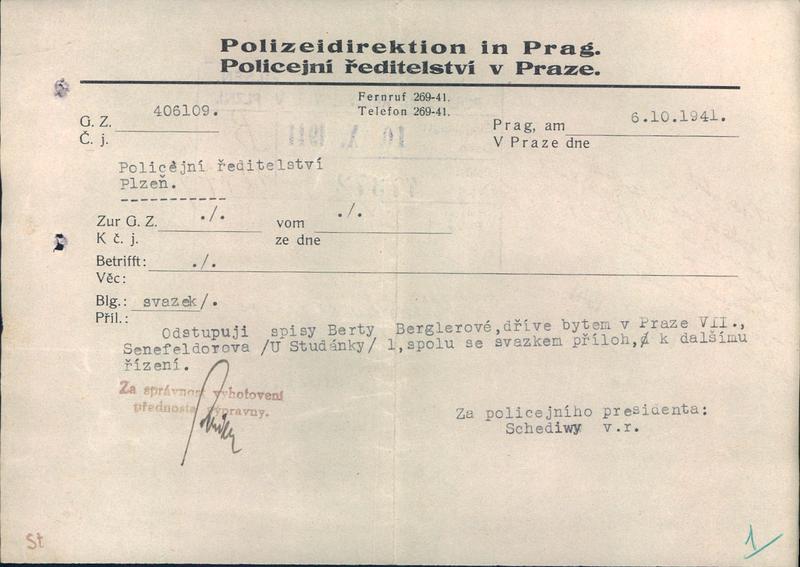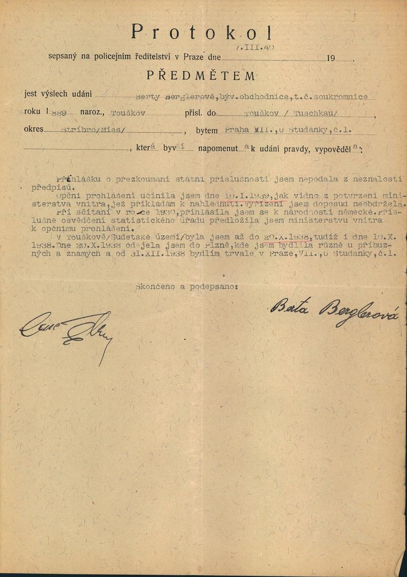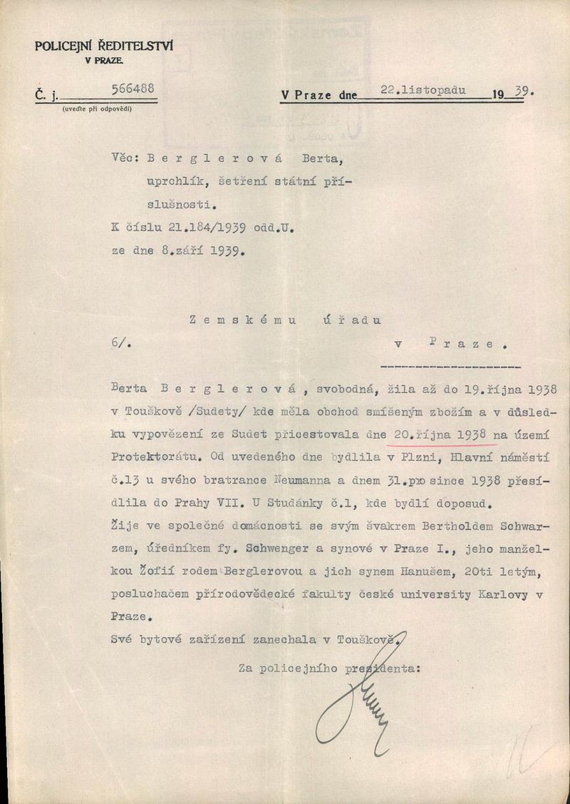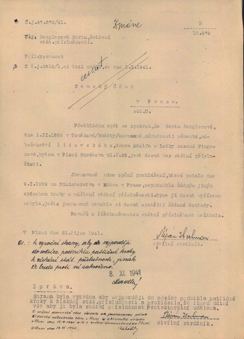 Staatliche Gebietsarchiv in Pilsen > Polizei-Direktion Pilsen > 1918-1951 > B > Berglerová Berta
