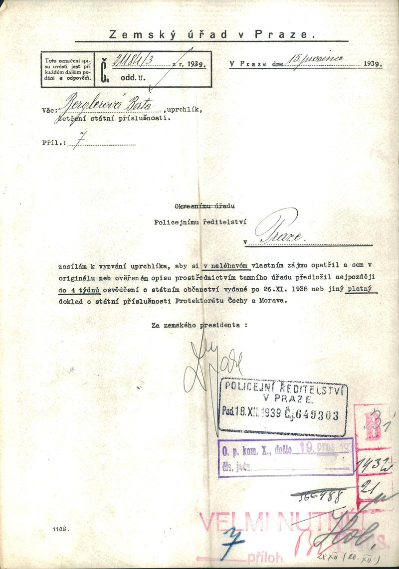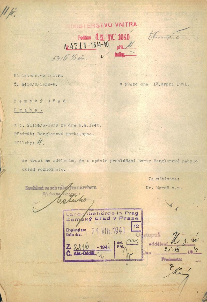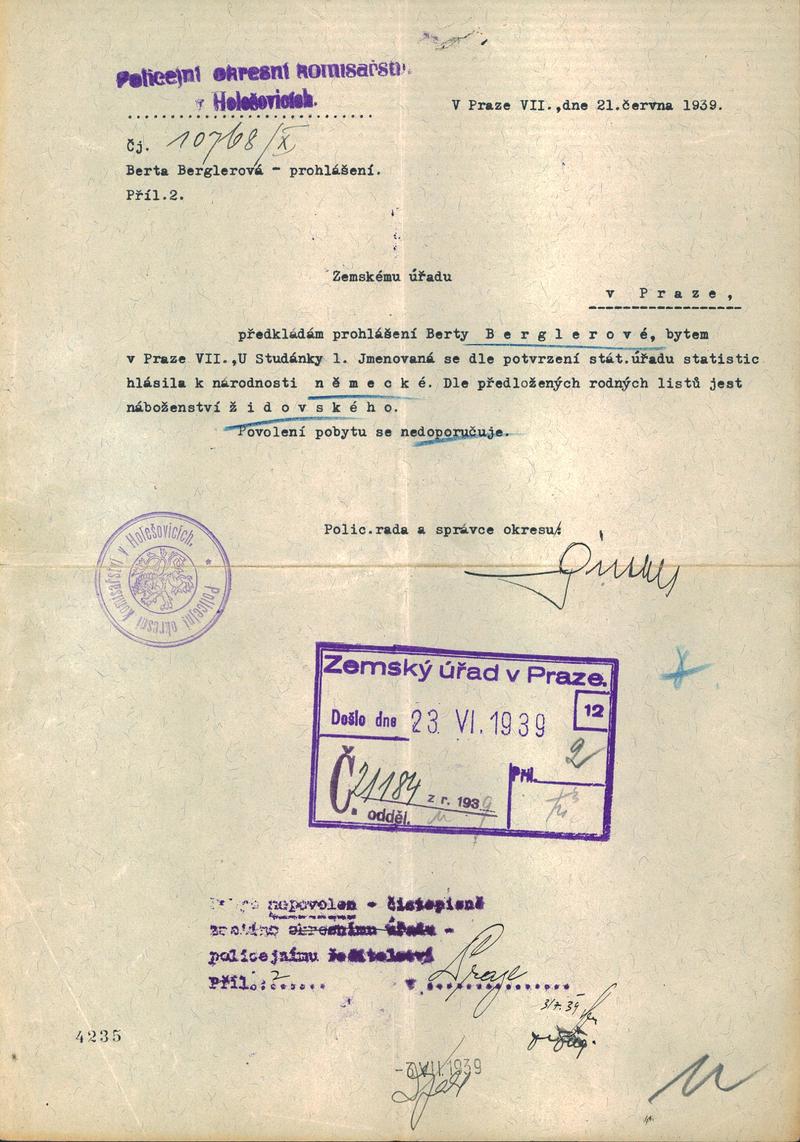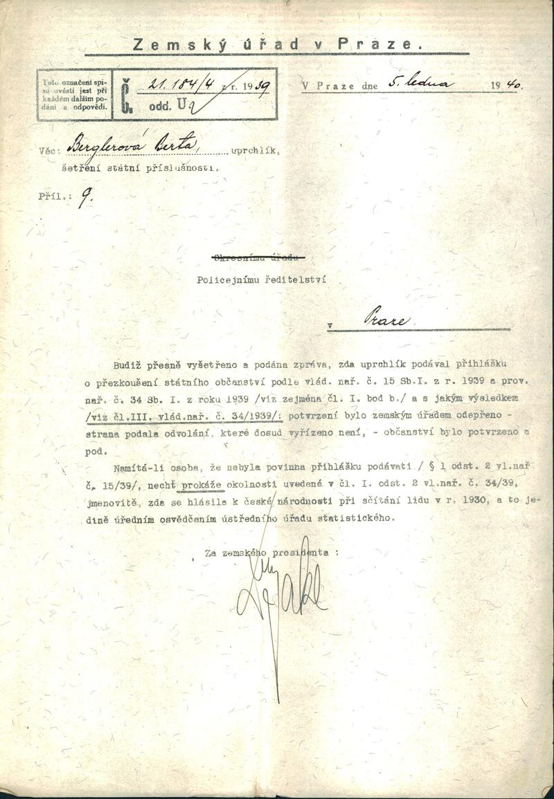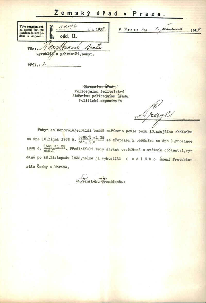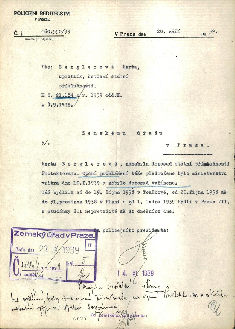 Staatliche Gebietsarchiv in Pilsen > Polizei-Direktion Pilsen > 1918-1951 > B > Berglerová Berta