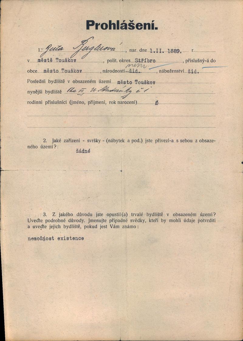 For publication purposes, contact the State Regional Archives in Pilsen, where the original document is located. The document was digitized by the Terezín Initiative Institute, the Terezín Album project.