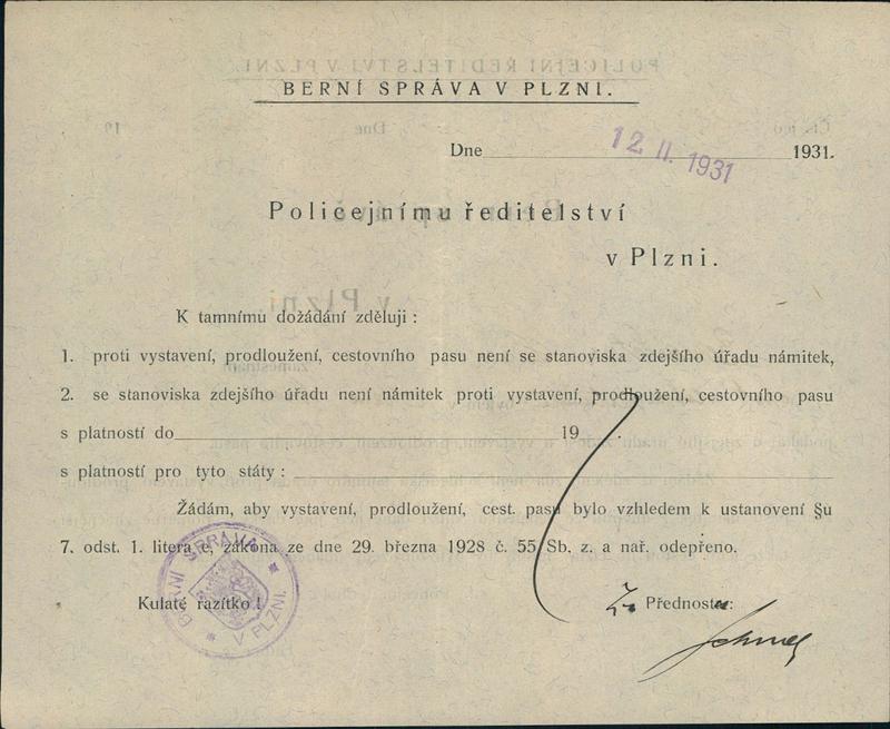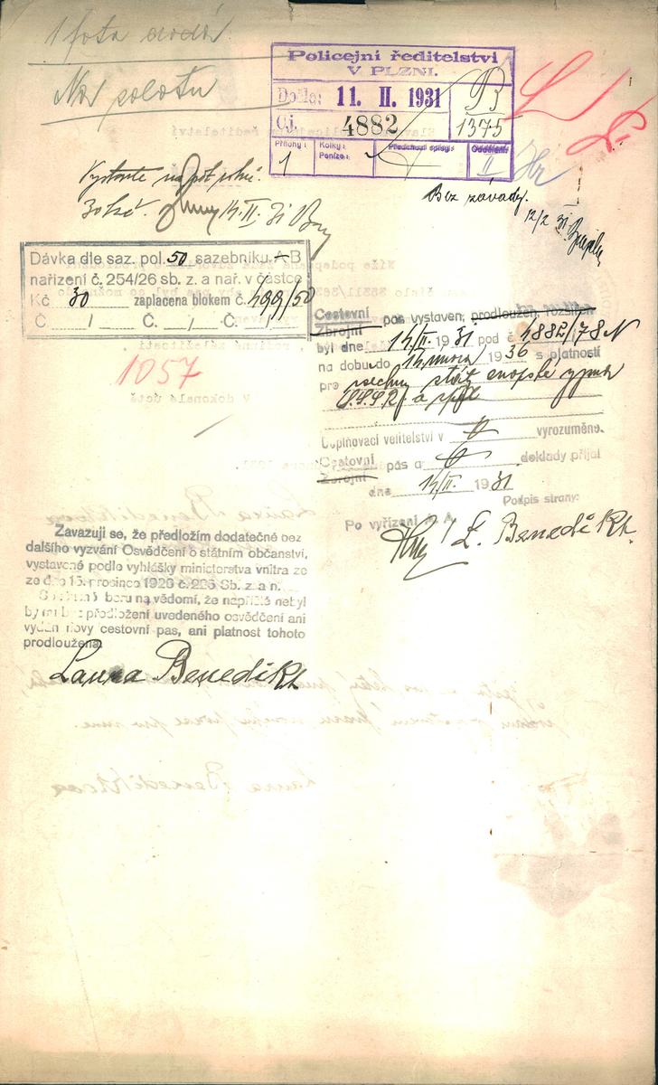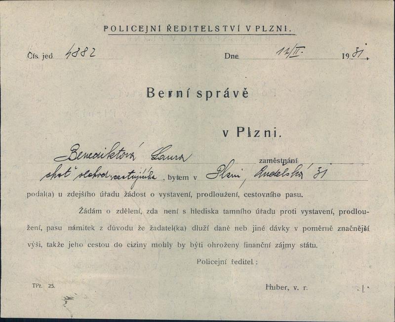 Staatliche Gebietsarchiv in Pilsen > Polizei-Direktion Pilsen > 1918-1951 > B > Benedikt Nathan