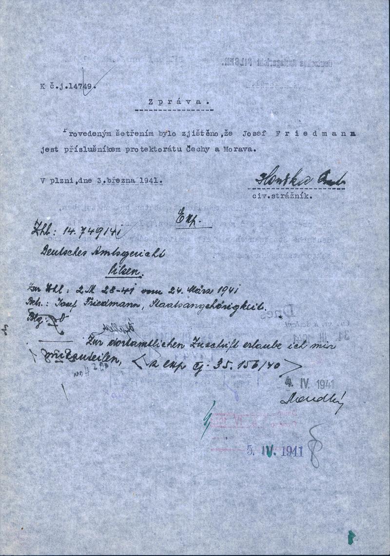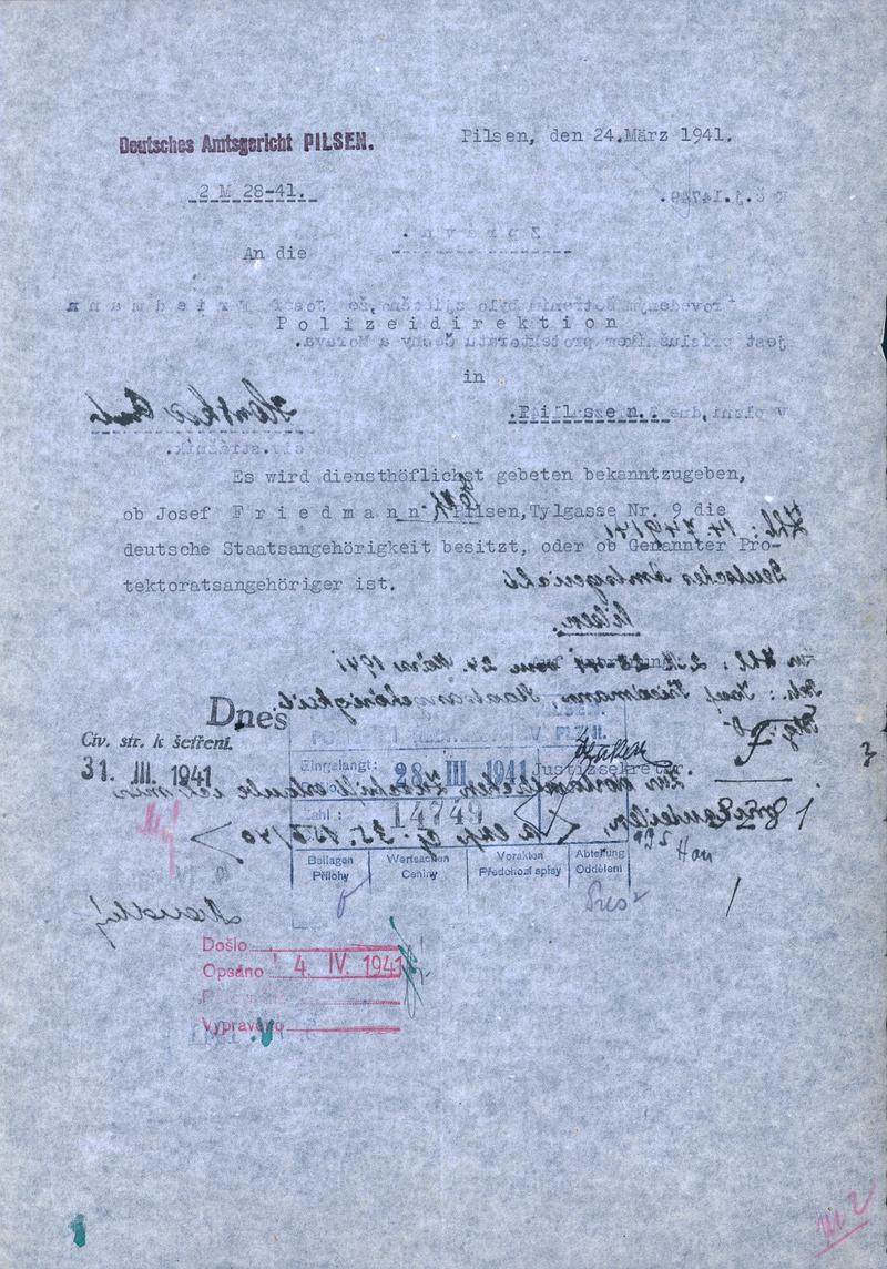 For publication purposes, contact the State Regional Archives in Pilsen, where the original document is located. The document was digitized by the Terezín Initiative Institute, the Terezín Album project.