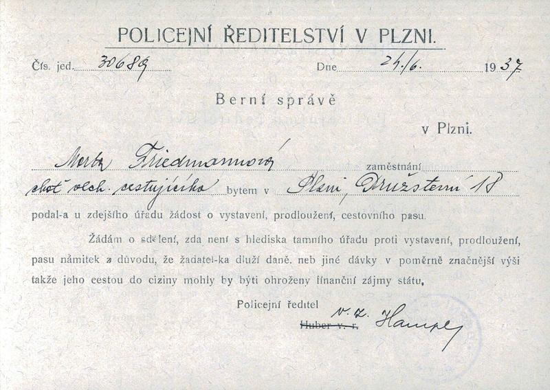 Staatliche Gebietsarchiv in Pilsen > Polizei-Direktion Pilsen > 1918-1951 > F > Friedmannová Marta
