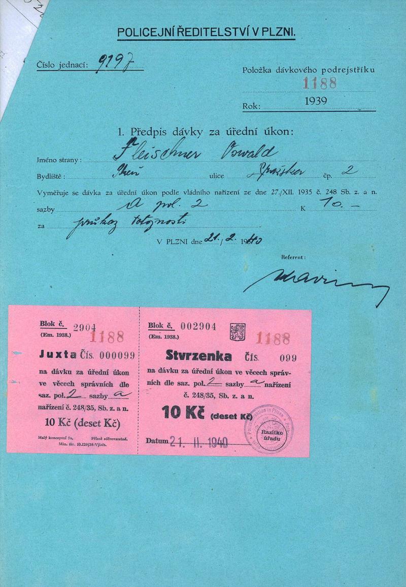 Staatliche Gebietsarchiv in Pilsen > Polizei-Direktion Pilsen > 1918-1951 > F > Fleischner Osvald