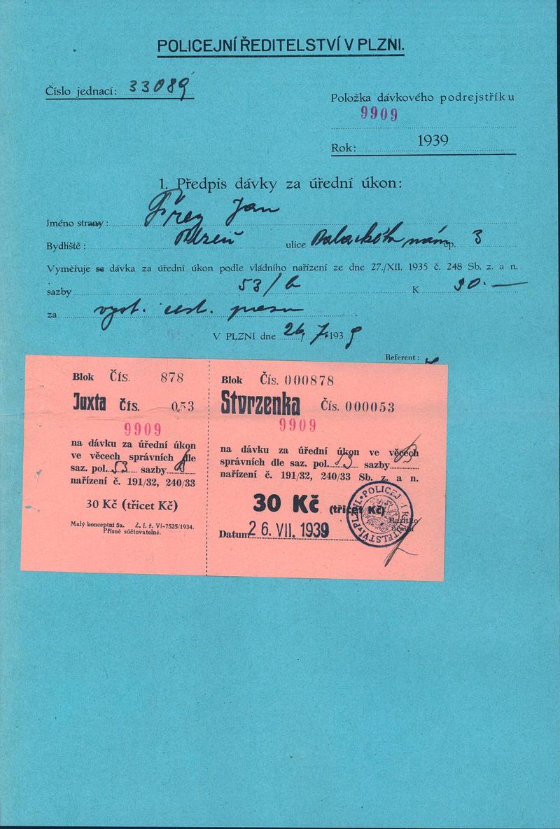 Staatliche Gebietsarchiv in Pilsen > Polizei-Direktion Pilsen > 1918-1951 > F > Frey Johann