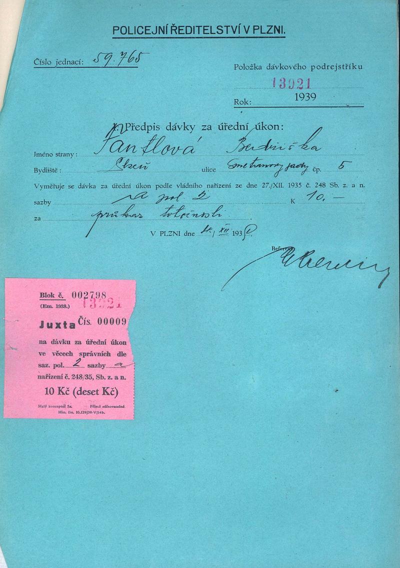 Staatliche Gebietsarchiv in Pilsen > Polizei-Direktion Pilsen > 1918-1951 > F > Fantlová Frieda