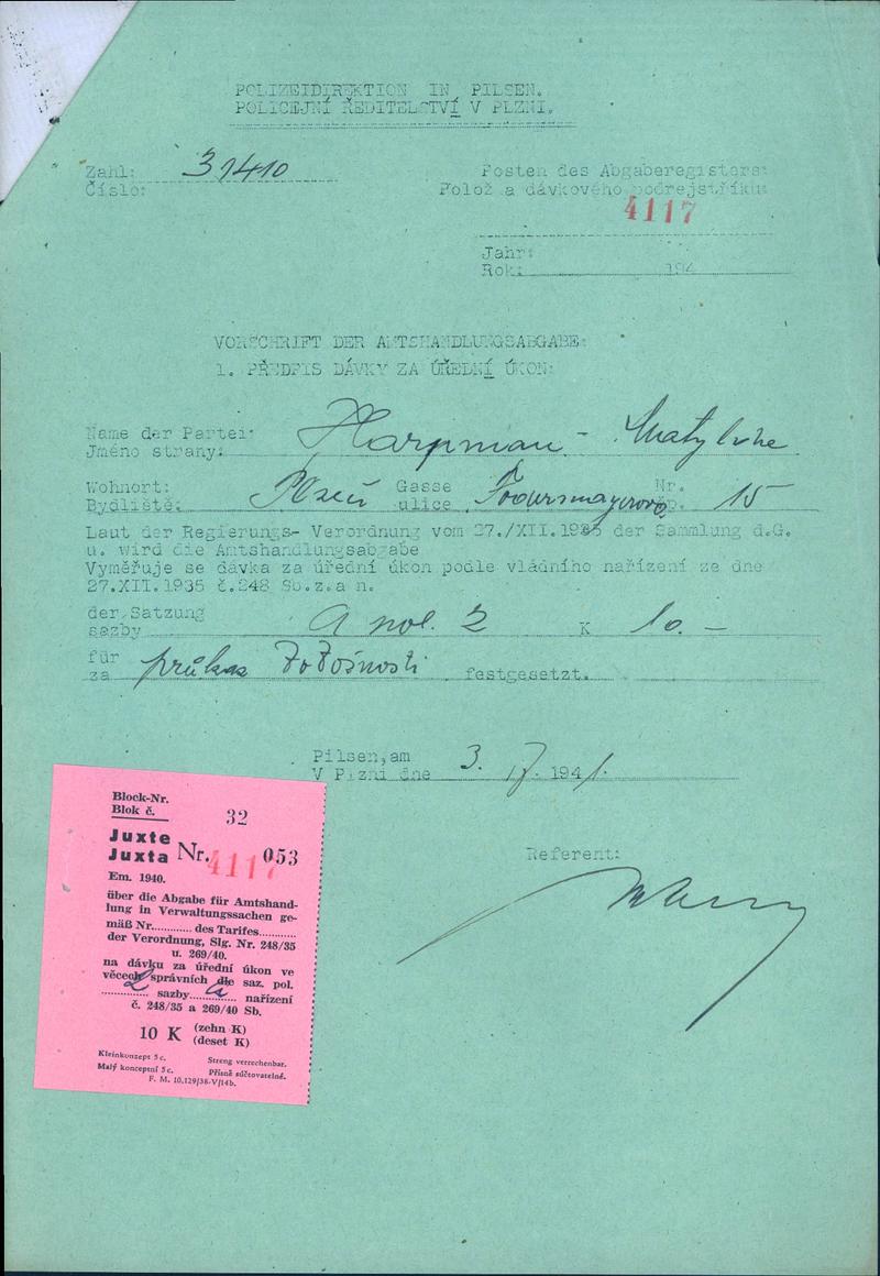 Staatliche Gebietsarchiv in Pilsen > Polizei-Direktion Pilsen > 1918-1951 > H > Harpmann Julius