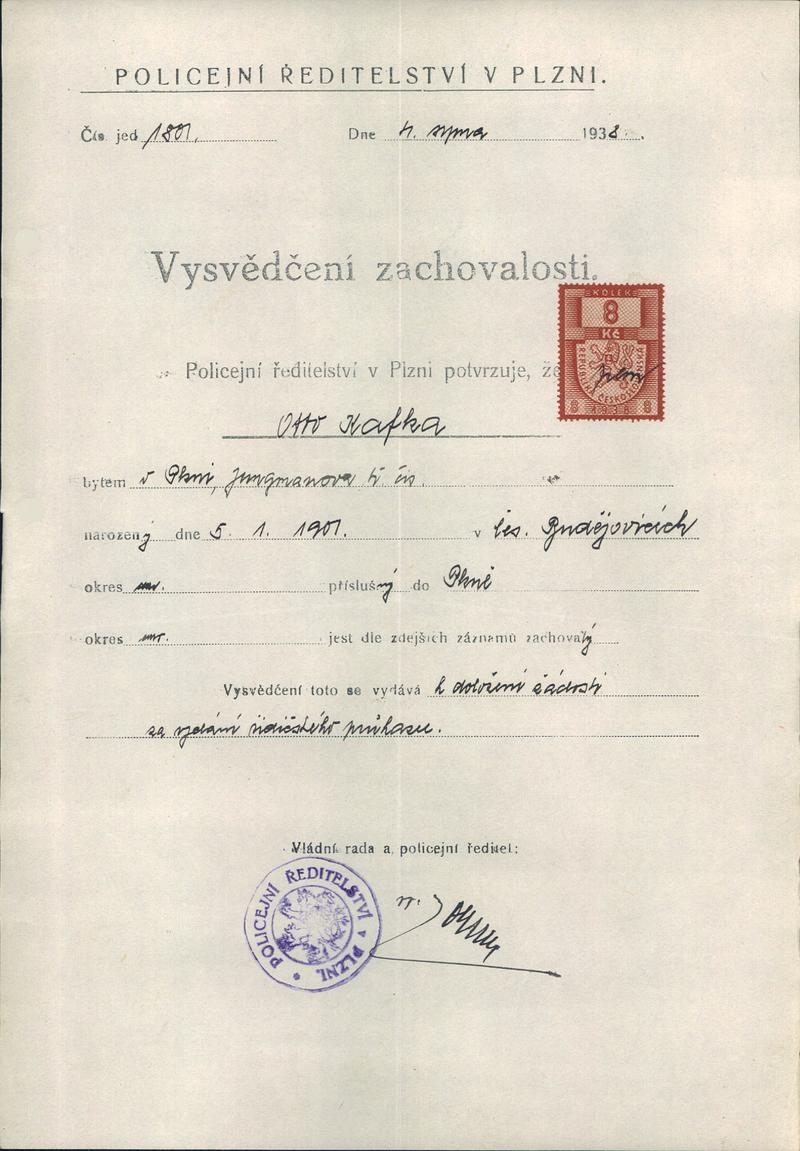 Staatliche Gebietsarchiv in Pilsen > Polizei-Direktion Pilsen > 1918-1951 > K > Kafka Ota
