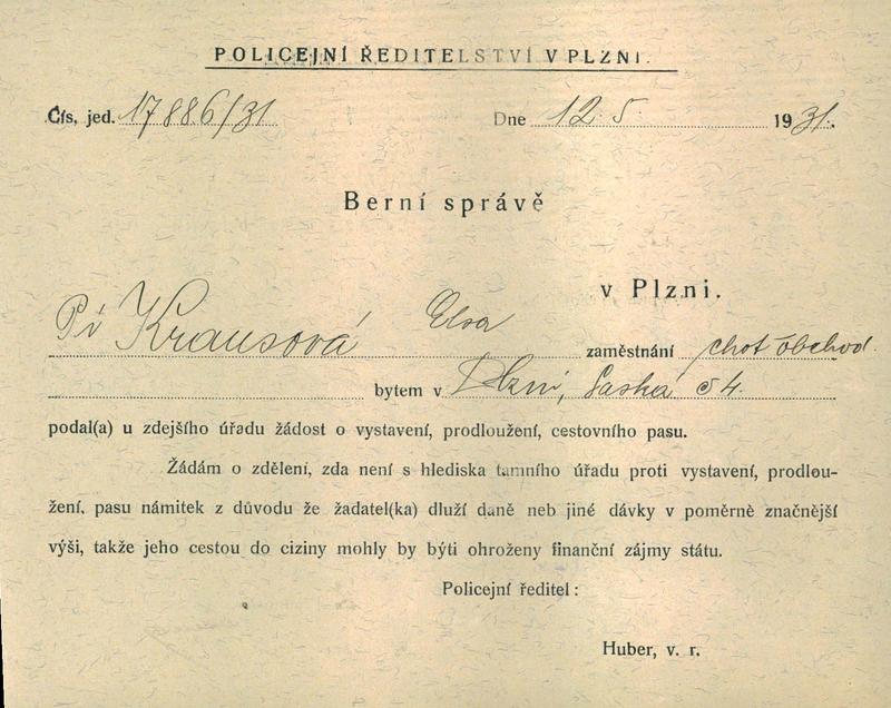 Staatliche Gebietsarchiv in Pilsen > Polizei-Direktion Pilsen > 1918-1951 > K > Krausová Elsa