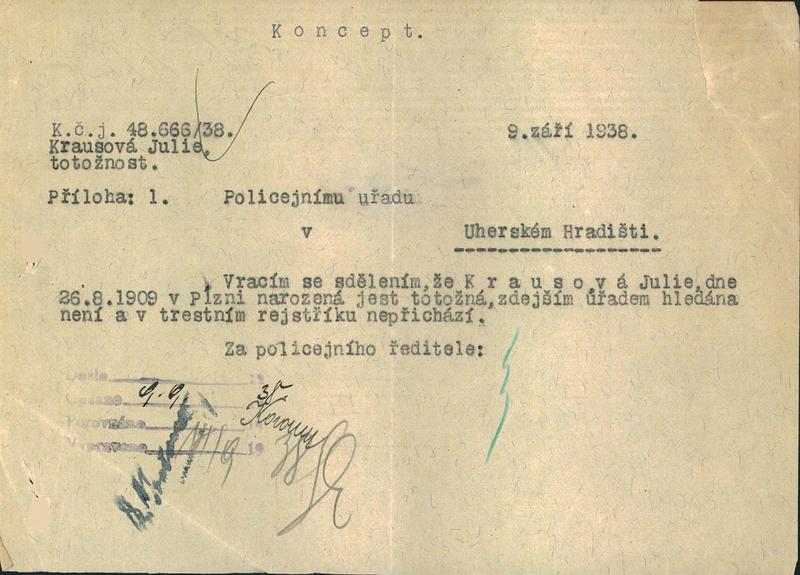 Staatliche Gebietsarchiv in Pilsen > Polizei-Direktion Pilsen > 1918-1951 > K > Krausová Julie