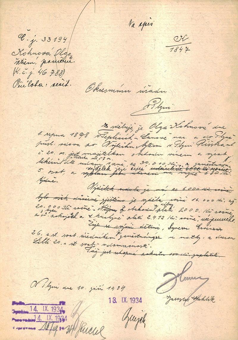 Staatliche Gebietsarchiv in Pilsen > Polizei-Direktion Pilsen > 1918-1951 > K > Kohnová Olga